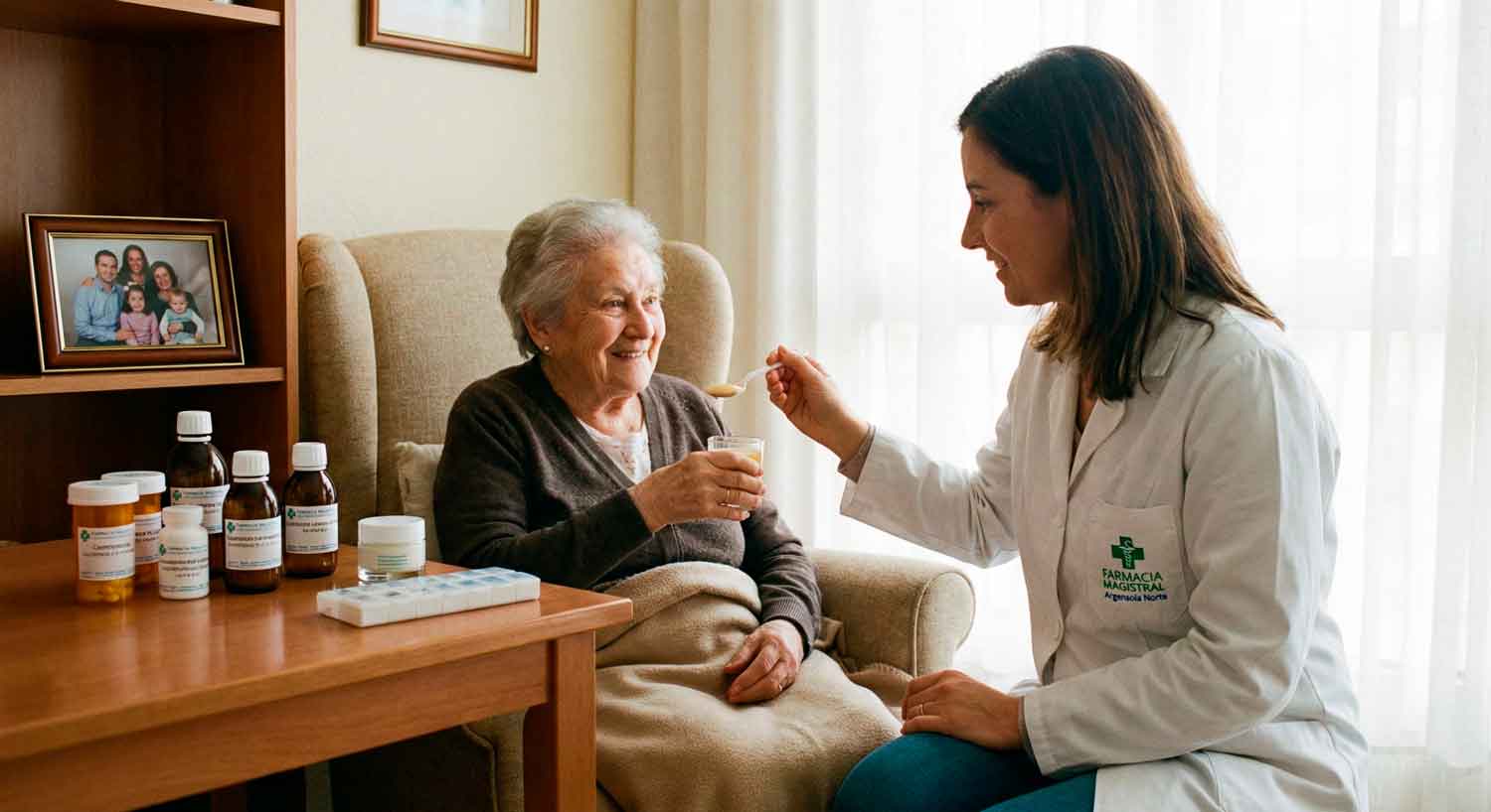 En Farmacia Magistral Argensola Norte, creemos que el paciente mayor no debe sufrir para cuidarse. Trabajamos junto a geriatras, médicos de familia y cuidadores para transformar los tratamientos complejos en soluciones amables, seguras y cien por cien personalizadas.